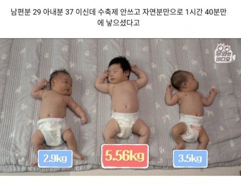 근데 4키로 이상 나오는 애들보면 심장 잡음도 들리고 최상의 컨디션은 아닌애들이 있더라고요.. 적당한 몸무게일 때 낳는 게 최고..