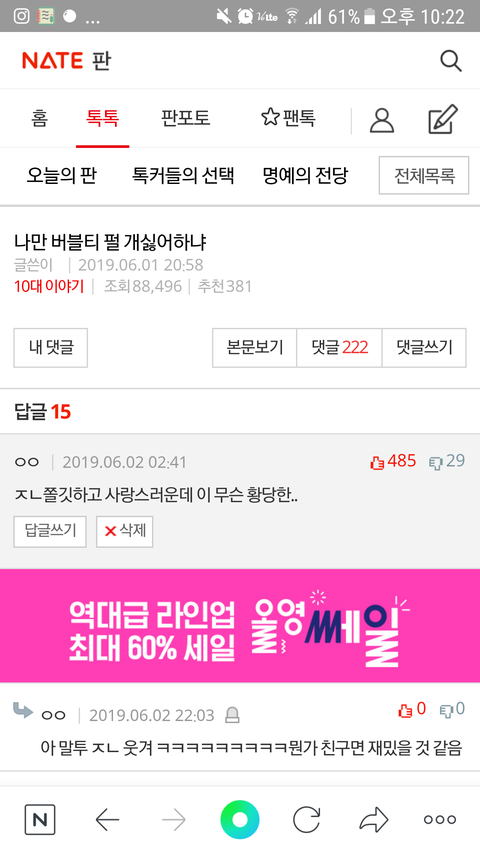 댓글 많은 톡