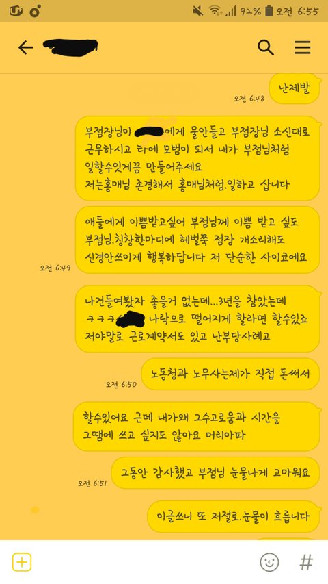 제가 어른이니까 고객하고 싸울생각하지말라고 너 포스 보는거 보면 살얼음판 걷는기분이라고 맨날 불평불만