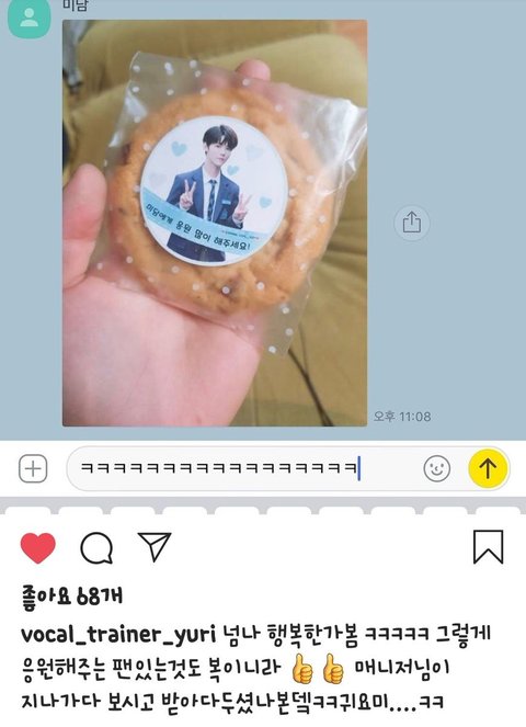 말없이 손바닥에 쿠키올린 사진한장 덜렁보낸거 진짜 이미담답고 개기여워..,, 사진찍고 혼자 입꾹꾹 하며 행복해햿겟찌..,.,진짜 미친다 프사없는것도 귀여워;