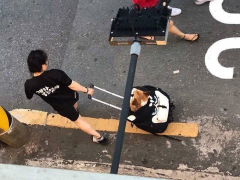 강아지 캐리어에 태우고 산책중 넘어지는 사고 발생