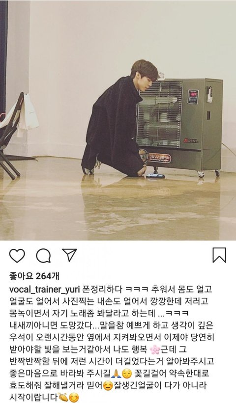 김우석 보컬트레이너가 인스타에 올린사진