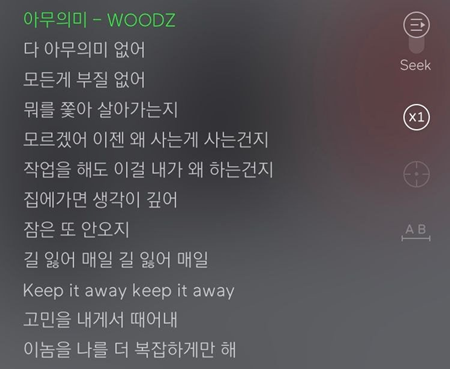 <이 무렵 조승연이 발매한 ‘아무의미’ 가사>