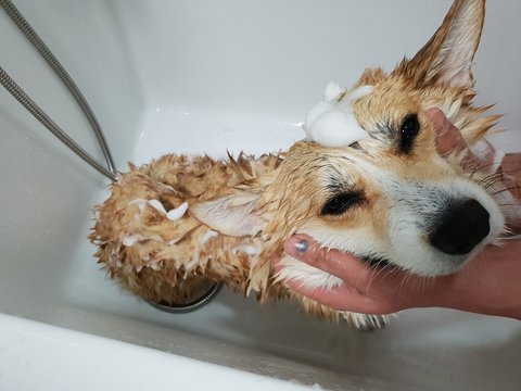 물을 좋아하는 살구는 목욕도 착하게 잘 해내요!