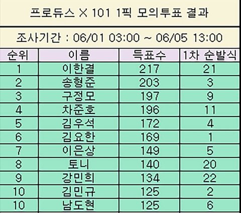 한결이 1위 떠서 진짜 좋긴 한데.. 솔직히 저건 걍 재미로 보는거지 실질적인건 아닌듯 ㅠㅜㅜㅜㅠㅠㅜㅜ