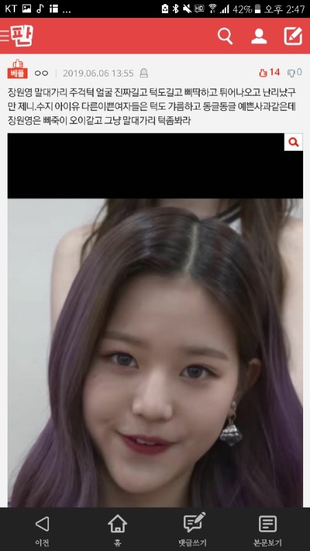 솔직히 너무 심한 거 아니야? 저거 댓글 계속 달리는데 다 까댓이더라 미쳤나 봐 고소글 공지 떴는데도 보란 듯이 계속 올리네