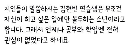 하고싶은 일에 열정을 다 쏟아서 학업에는 정말 관심이 없었던 김현빈 연습생