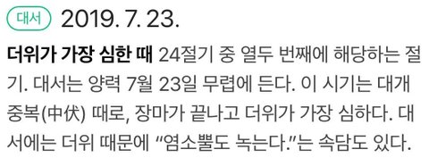화사 생일 7월 23일인데 대서. 1년 중 가장 더운 날