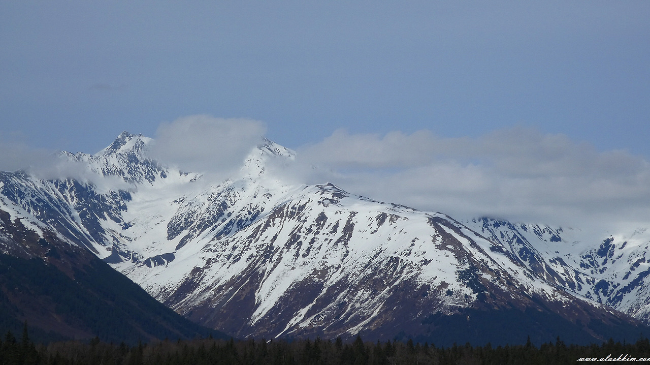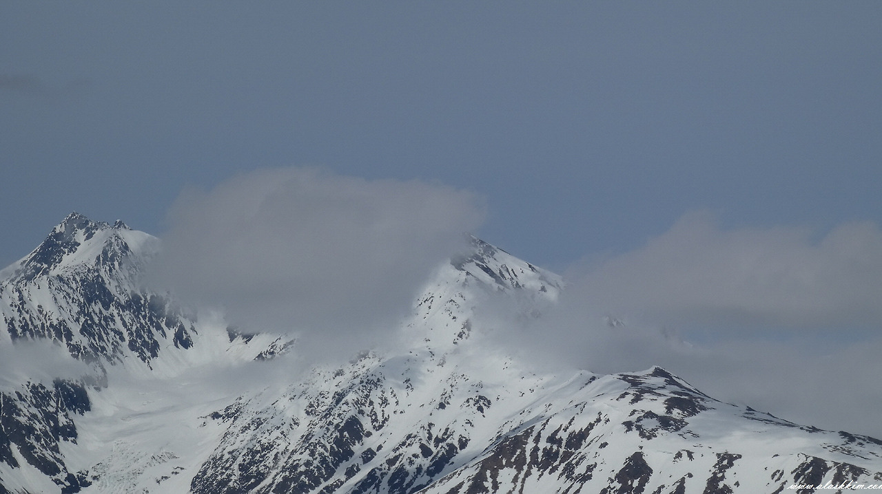 솜사탕 같은 구름들이 설산 위에서 담소를 나누는 듯합니다.