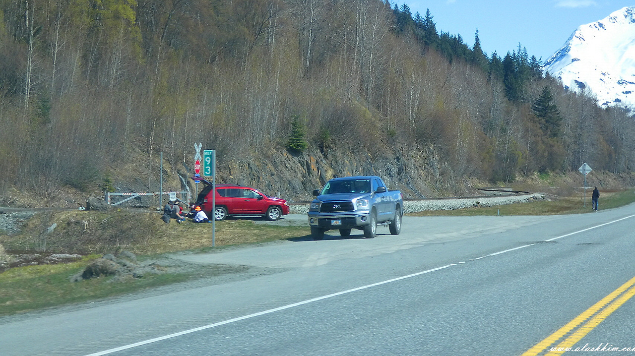 나물을 캐러 온 한인 아주머니들이 도로 한편에서 점심을 드시고 계시네요.