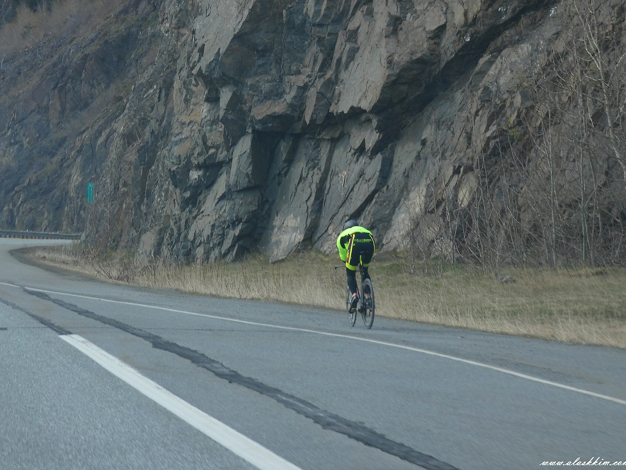 자전거를 타고 스워드 하이웨이를 누비는 자전거 하이킹족을 만나게 되는데