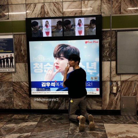 어제 광고판 투어 다녔나봐 내동생 어제 압구정역에서 김우석 목격함 기간이 다되서 내린건지 올라갈 예정인지 모르겠는데 빈 광고판 앞에서 김우석이 당황하고 있었대 가서 투표하고 있다고 응원해주니까 감사하다고 손하트하고 90도로 인사해줬다고 함 다정하고 착한거 같아 동생 원픽이라 넘 떨려서 사진 찍자고는 못했대 그래도 계탄거 부러워