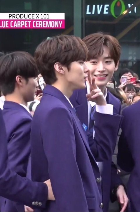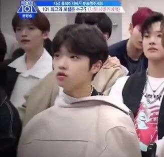 자... 상암으로 거슬러 가 보자 프듀의 비주얼 2위 멋진 우석이 형아의 얼굴을 보며 활짝 ^___^ 웃는 구정모 연습생... 이 이후에 허리에 손을 감싸는 과감한 스킨십도 했다고 합니다 서로 사랑의 총알도 쐈답니다 (우석이는 정모를 비주얼로 픽 했다고 합니다)