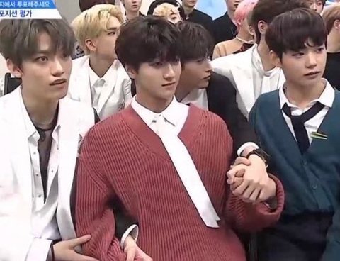 잘 보이지 않지만 옆에 있는 베이지수인은 미래형 동안 한결같은 한결이 형입니다 한 살 차이 2개월 차이이지만 형이에요 20대 싱글녀들의 맴을 훔친 한결 군... 얼빠 구정모 연습생의 마음도 훔친 것일까요? 한결이 형의 어깨에 자연스레 손을 올린 구정모 연습생 아니 근데 손동표 뭐냐고 ㅠ 왤케 귀엽냐고 ㅠ