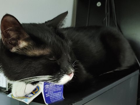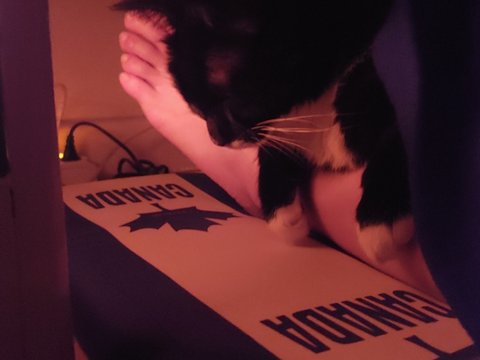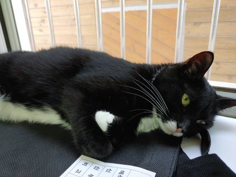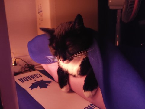 주인이 담요 안으로 슥 오시더니 머리만 내미시고 내 정강이를 쿠션삼으셨음