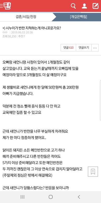 원본지킴이]시누가 반찬지적하는게 아니꼬운가요?