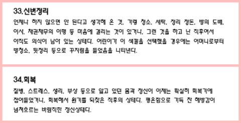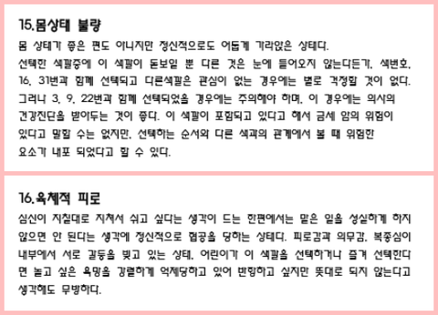 좋아하는 색이 아닌 끌리는 색 4개 고르면 됨