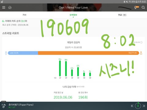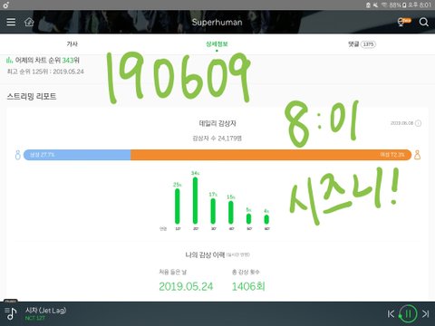 음원발매일부터 스밍한 타이틀곡 누적횟수