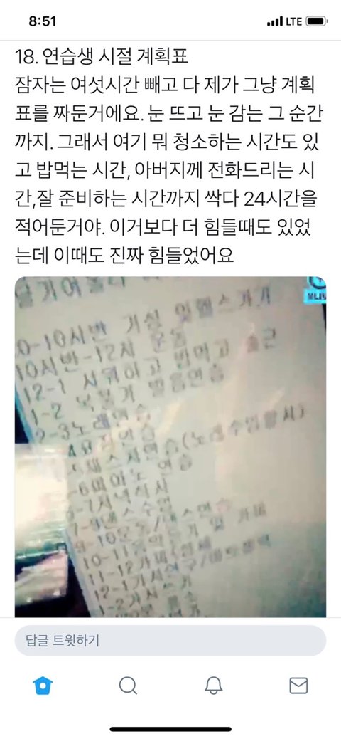 이거 보면 시 단위로 하루 계획이 적혀 있어 다들 방학계획표나 새해 계획 같은거 세우곤 하지? 난 그런걸 세워도 제대로 하지도 않거나 해도 대충하는데 성현이는ㅜㅜ 이런 계획을 세운거부터가 아이돌을 하고 싶다는 열정이 느껴지지 않니?