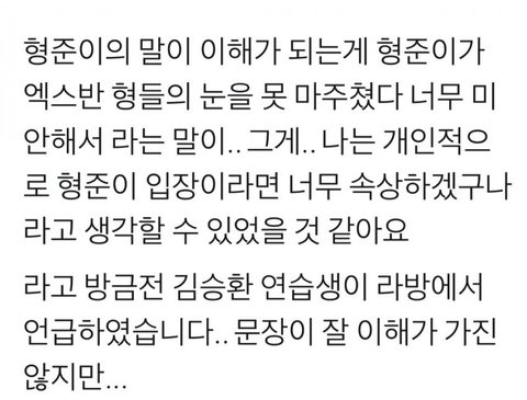 은 송형준같음..순발식에서 형들 언급하면서 컨셉질이라고 욕 엄청 먹었는데 현실은