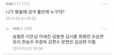 갤에 올라온 탈락연생이 쓴 성격 좋은애들중 한명이 송형준
