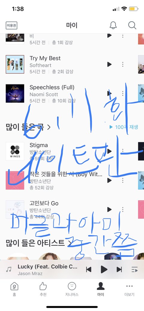 상머글이었던 내가 방탄 노래를 몇개 들어보다가 수록곡까지도 즐겨 듣게 된 거 ,,인증할게 ㅠㅠㅠ스밍 인증이 아니라서 미안해!!