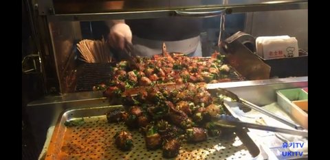 파를 돼지고기로 돌돌 말아 숯불에 구운거에요