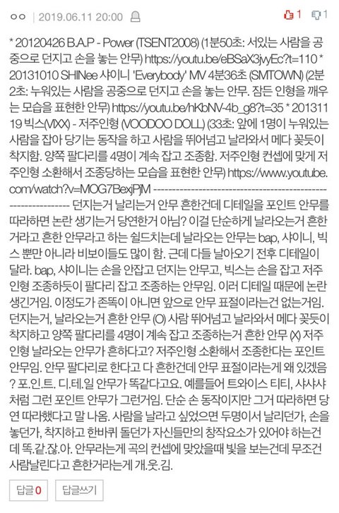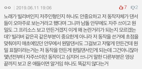 이댓글처럼 같은곡 같은부분이라는건 전혀 중요하지않음. 저 안무를 썼다는거에 집중해야지 같은곡이라고 해서 논란의 여지가 될수는 없다고 생각함.