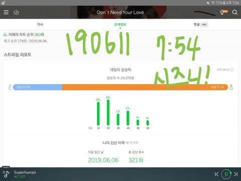 음원발매일부터 스밍한 타이틀곡 누적횟수