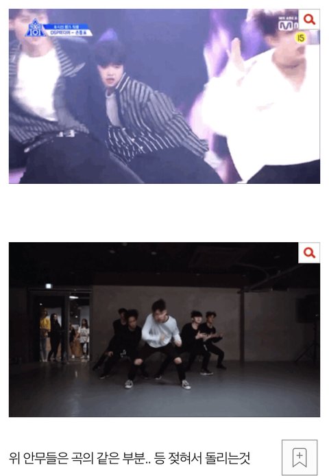 그냥 다른 안무야 ㅋㅋ 직캠영상을 찾아보면 완전 스쳐지나가는 장면을 순간적으로 잡아내서 움짤로 만든게 보여. 심지어 주저 앉는것 같은 안무는,, 누가 봐도 다르지? 프듀 빌리버는 힘있게 파드득 하면서 풀썩 쓰러지는 안무고, 원밀리언 빌리버 안무는 꿈틀 꿈틀 하면서 천천히 내려앉는 안무야. 그냥 똑같이 앉기만 한다는 이유로 표절이라는건 ,, 표절의 의미를 잘 모르는거지 ㅎ