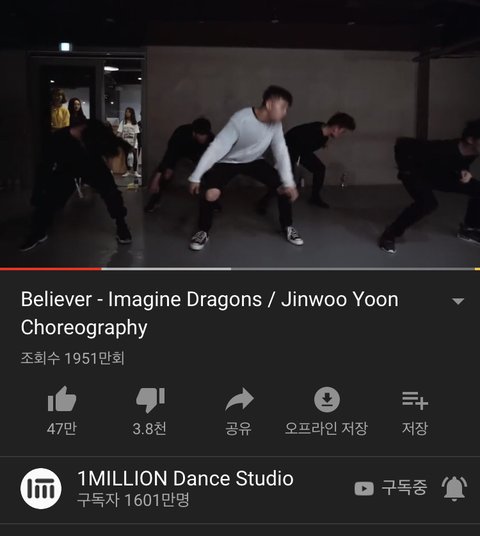이게 의혹글 쓰니가 이야기 하는 빌리버 원본안무야. 조회수가 2000만 가까이 되지? 굉장히 유명한 영상이고, 댄서나 안무가들 사이에서는 더더욱 그래. 근데, 과연 진짜 표절이라면 최영준선생님이나 배윤정선생님께서 모르셨을까? 표절 의심이라고 받을정도로 안무를 따왔다면 선생님들께서 빌리버 팀에게 이야기 하셨을거야. 표절이 아니니까 직캠으로 뜬거고.
