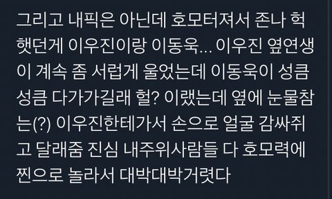 노력파 17살 순딩이 우진이한테 어케 그럴수가있음 편곡다시 하라했으면 다시 연습하고 그랬을거아냐;; ㅇㄴ 진짜 이우진 랩포지션도 아닌데 50등이였어가지고 보컬이랑 댄스가 안남아서 랩 들어간거같은데 진짜 너무한거 아냐?ㅜㅜ