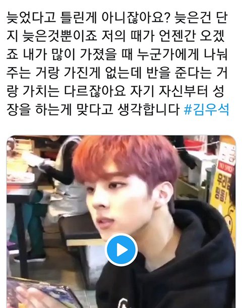 짧게 지나가는 인터뷰에서도 살짝살짝 김우석의 남다른 어휘력을 볼 수 있다