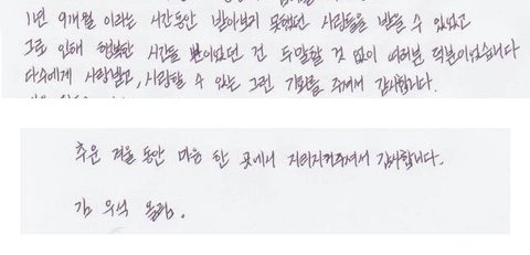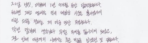 아래는 활동 중단 하기 전 팬들에게 보낸 편지 중 일부