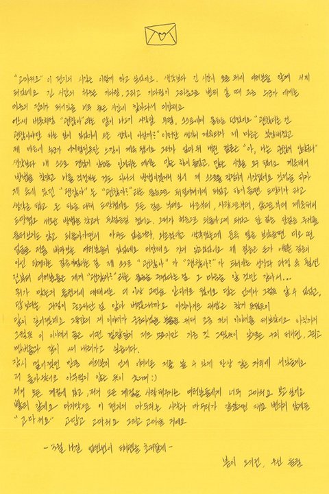 마지막으로 이 편지의 마무리는 시작과 마무리가 같았으면 해요.변하지 않게끔.