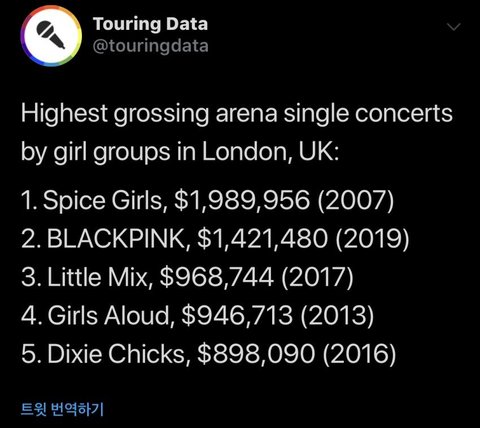 블랙핑크 런던 콘서트 흥행수익 역사상 2번째.