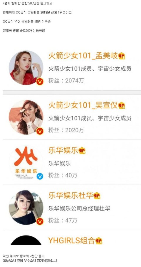 뭣 모르고 막말하는 것들 진짜 많네 ㅋㅋ 미기가 우주소녀에서도 손 꼽히게 무대 잘하는 멤이야 근데 자꾸 수납하고 우주소녀는 성과 크게 안 나오니까 중국 간 거고 가서 뭐라도 안 하면 언제 정산 받음? 지금 중국 가서도 한국멤들이랑 여전히 친하게 잘 지내고 우소도 이제 잘 되는 중인데 지들이 뭘 안다고 짱깨 짱깨거려 미기 선의 성소 셋 다 한국 엄청 좋아하는 애들인데 너희 본진이 외국멤한테 통수 맞았다고 그 나라 자체로 지랄을 하냐 동남아 가면 한국도 ___ 남자들 때문에 인식 개바닥인데