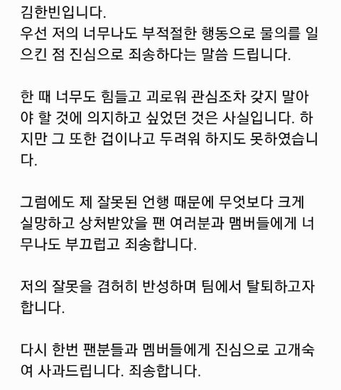 아니 근데 비아이 탈퇴글 너무 성의없는거 아니냐