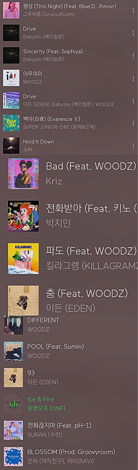 Woodz라는 이름으로 여러 아티스트들 곡에 참여하고 자작곡도 여러개 냈어 (개인적으로는 pool이라는 노래랑 아무의미 추천할게)
