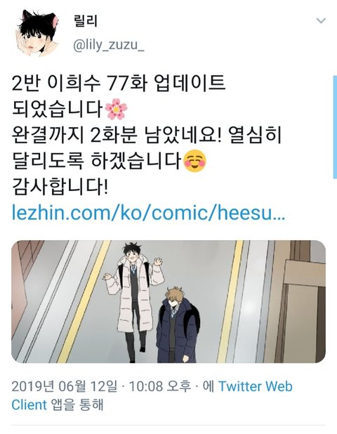 2반 이희수 곧 완결이래