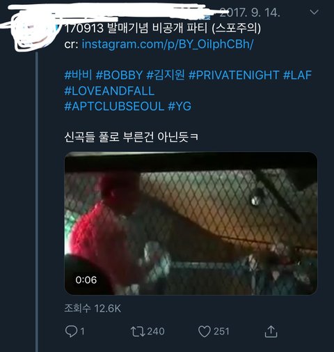 사진에서 나와있다싶이 바비 솔로앨범 나온 이후 비공개 파티에서 바비가 “여기까지 들려줄래 여기까지야!”라고 얘기를 했는데, 이걸 어떤 미친놈이 “여기서 제일 예쁜 여자 일어나!”라고 말했다고 날조해서 ㅇㅅㅇ님이랑 사귀는거 아니냐고 루머를 퍼뜨렸어. 그래서 팬들이 당시 영상 공개하면서 그렇게 말한 적 없다고 하니까 계폭하고 튀었었어.