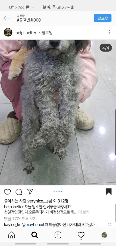 알라는 학대로 한쪽발이 사진처럼 휘었구 몸에 묶여있던 흉터가있어요ㅠㅠ