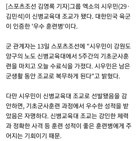 기사로 민석이 조교피셜 남~~~