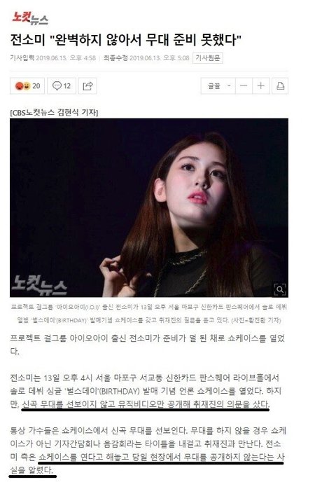 전소미 완벽하지 않아서 쇼케 무대 안했다함