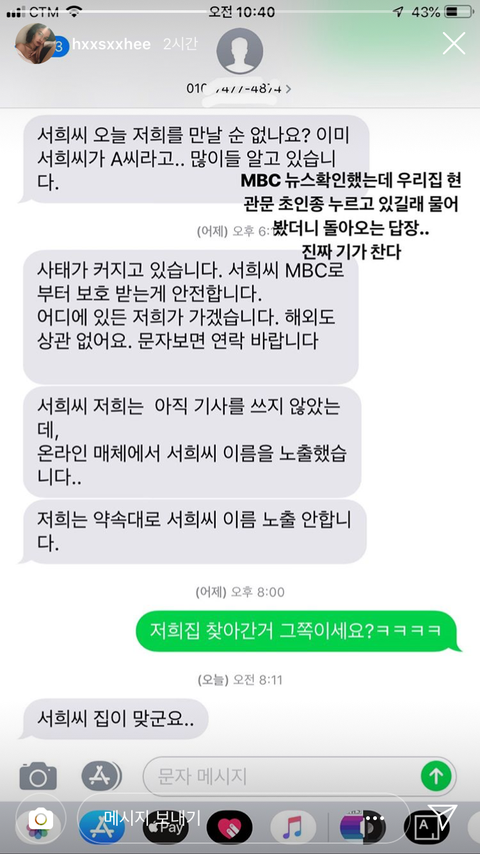 한서희 집 찾아간 기자 폰번 공개됨