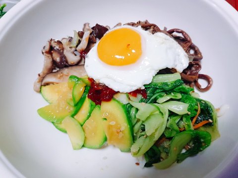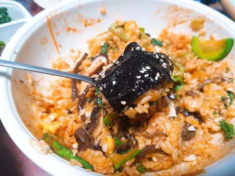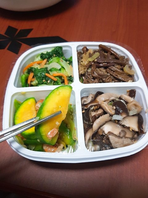 비빔밥 재료인 나물을 반찬 가게에서 사옴
