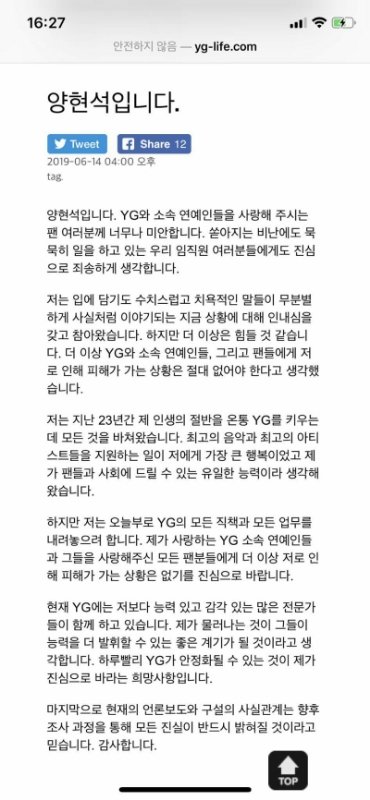 얘들아 양현석 은퇴한대