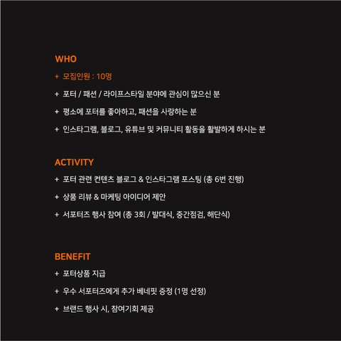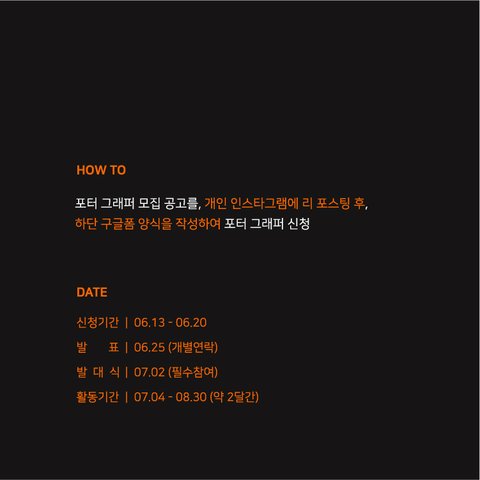 지원 방법 : @poreter_grapher 모집 공고 개인 인스타그램에 리그램 후 구글폼 양식 (https://forms.gle/3F6bRHjWS4M54dSw5) 작성하면 끝