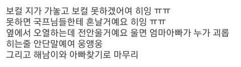 울면 엄빠가 괴롭히는줄 안다고 할때 ㄹㅇ 으;