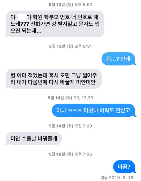 ?ㅇㅇ바꾼다했잖아 수업중임 연락ㄴㄴ